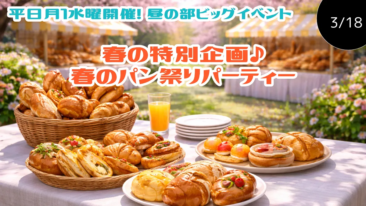 - 平日月1水曜開催!昼の部ビックイベント!! 春の特別企画♪春のパン祭りパーティー