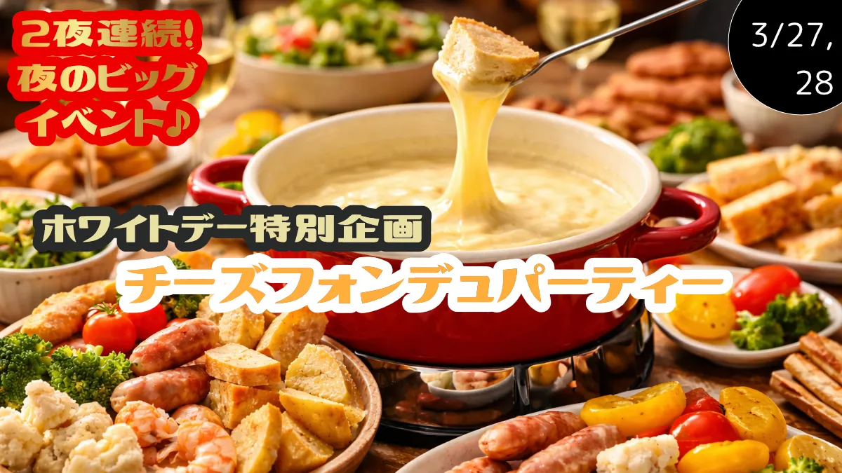 - 2夜連続!夜のビッグイベント♪ホワイトデー特別企画 チーズフォンデュパーティー