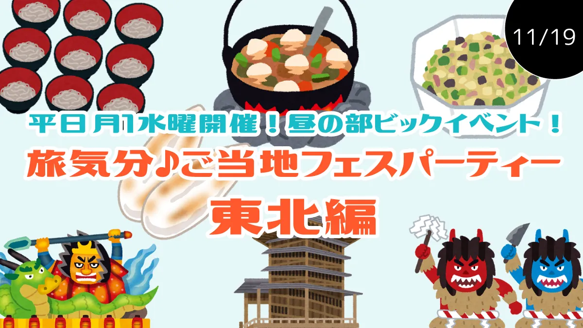 - 水曜開催!昼の部ビックイベント! 旅気分♪ご当地フェスパーティー 東北編